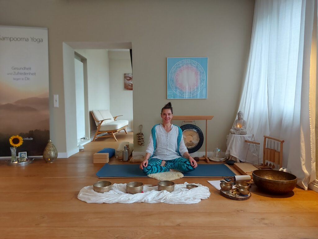 Claudia und ich geben um 11:15 h eine Mantrayogastunde, in der wir die Flows und Asanas live mit Musik und Klang begleiten und mit einem Gong- & Klangbad ausklingen lassen. Davor findet um 10 h Kirtan (Mantrasingen) statt – Du kannst eine oder beide Einheiten besuchen.